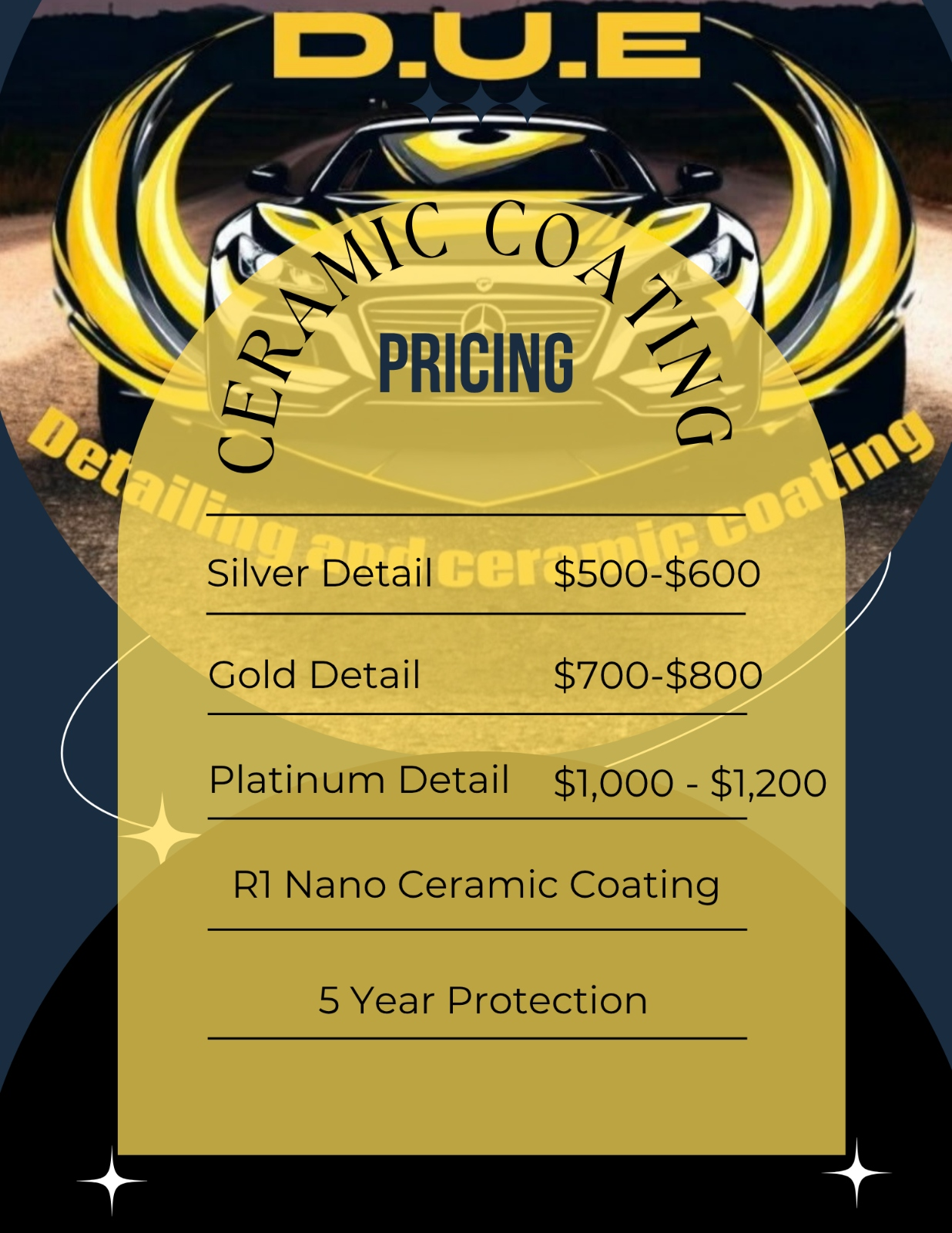 Protecting your vehicle with a long-lasting, high-gloss finish requires precision and expertise, and D.U.E Detailing & Ceramic Coating specializes in delivering exactly that. As a trusted auto detailing company, we provide professional exterior and interior detailing services that prepare your vehicle for a flawless ceramic coating application, using premium products and professional-grade tools. Our treatments not only enhance your car's appearance but also protect it from scratches, environmental damage, and everyday wear and tear. In addition to ceramic coating, we offer paint correction and headlight restoration, ensuring every detail of your vehicle looks and performs its best. We understand that maintaining a vehicle's beauty and value requires more than just a quick wash. Our comprehensive auto detailing services are designed to preserve your investment while giving you peace of mind that your vehicle is protected and looks its absolute best. Message us today to get set up for an appointment, so we can transform and protect your vehicle for years to come.